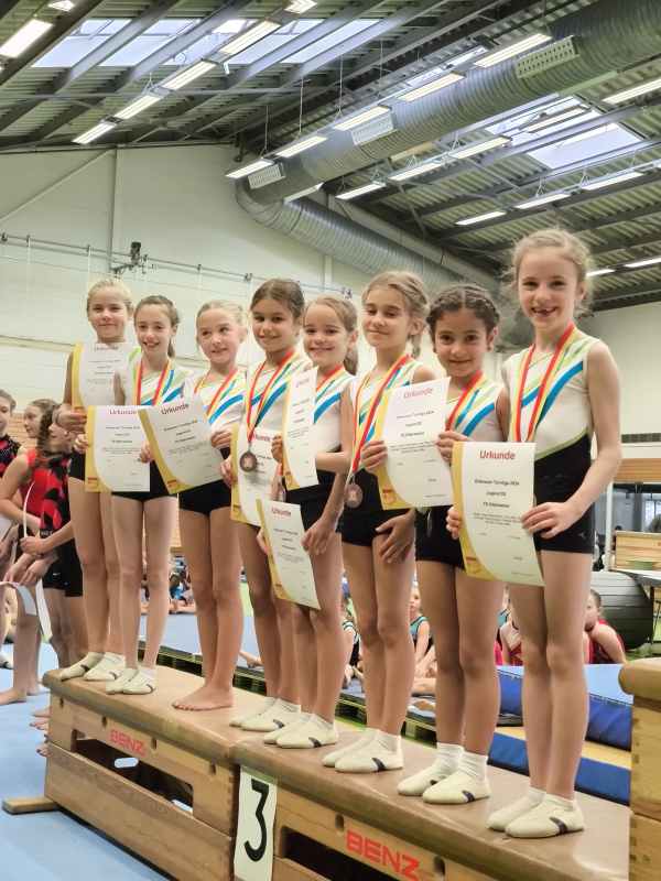 Dass es am Ende tatsächlich zum 3. Platz und der Bronzemedaille reichte, freute die Turnerinnen, Eltern und Trainerinnen riesig.